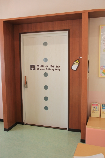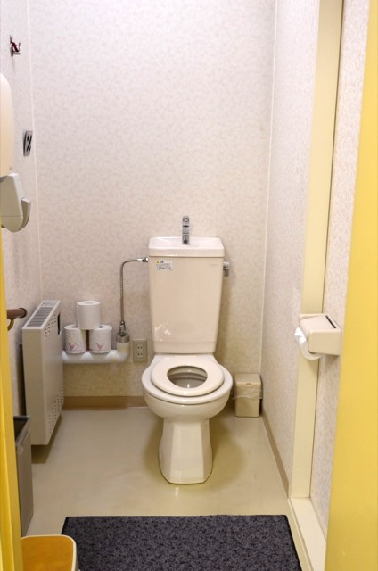 その隣には、女性・子供用トイレがあります。当院のトイレの中で一番広いトイレで、親子・介助者の方がご一緒でも入れます。車イスでの入室も可能です。