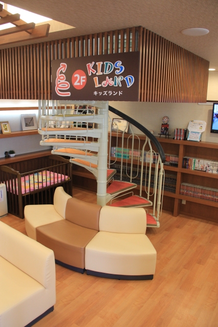 待合室の螺旋階段を上ると、そこにはお子様に喜ばれる遊び場が。