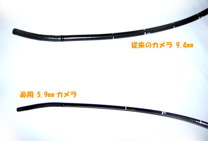 昔のカメラは直径が9.4mmのカメラでしたが、当院で使用しているのは5.9mmと半分の太さの、鼻から入れられるカメラもご用意。鼻から入れるカメラは、一緒に会話をしながらカメラが出来ます。(個人差があります)