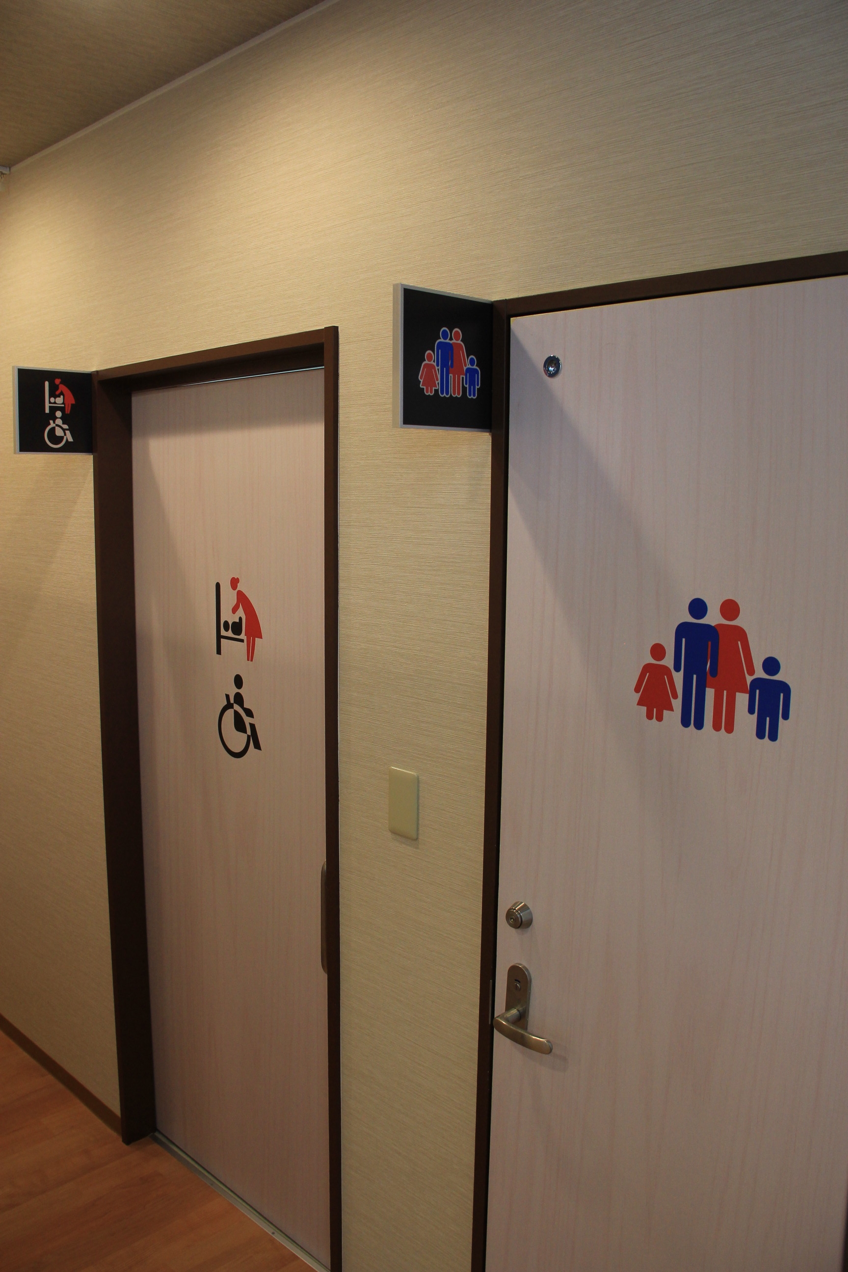 子供のオムツ変え用のシートはトイレにご用意しています。