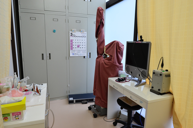 こちらの部屋では、Co2レーザーによる 鼓膜開窓術や、中耳換気チューブ留置を行ないます。